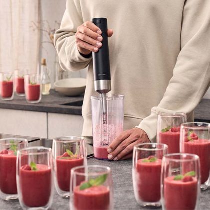 Soep pureren in de pot, sauzen gladmixen of snel een dip maken aan tafel — met de draadloze staafmixer werk je zonder beperkingen. De motor levert voldoende kracht voor dagelijkse bereidingen en blijft stabiel presteren, zelfs bij dikkere texturen. Geen snoer betekent meer controle, meer comfort en een opgeruimd werkblad.