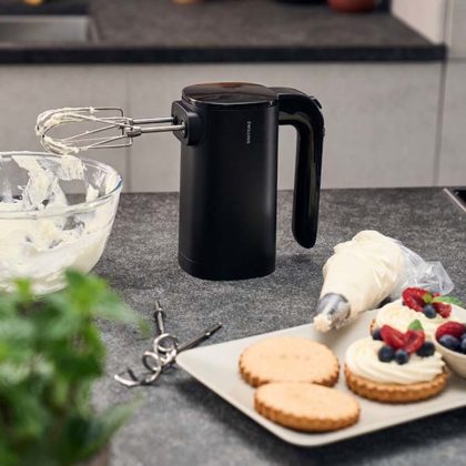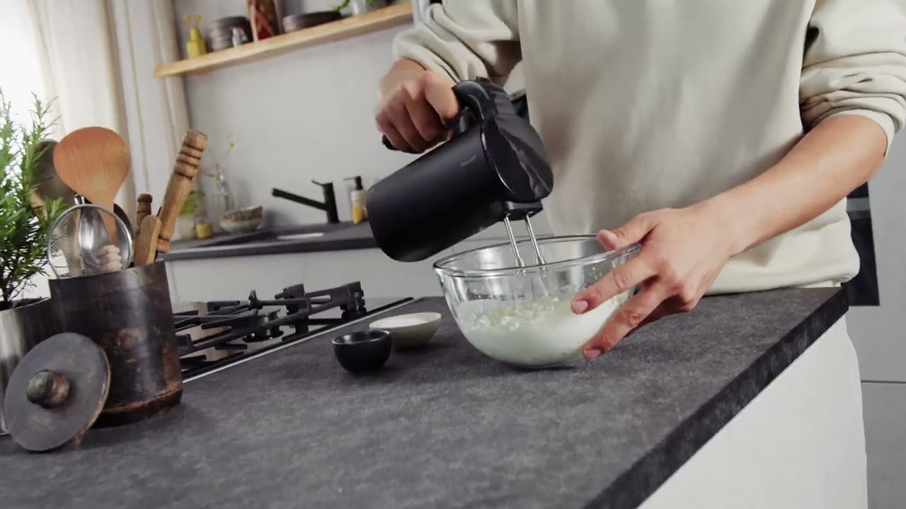 De draadloze handmixer is ideaal voor wie graag bakt, maar geen zin heeft in logge toestellen of kabels die in de weg zitten. Beslag kloppen, room opkloppen of deeg mengen gaat vlot en gecontroleerd. Dankzij het ergonomische ontwerp ligt de mixer goed in de hand, ook bij langere bereidingen.