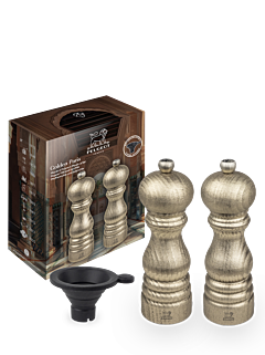 Voor de keukenliefhebber zijn er geschenkpakketten met iconische peper- en zoutmolens, vaak aangevuld met kruiden of accessoires. Ze brengen niet alleen smaak op het bord, maar ook karakter op tafel. Het herkenbare Peugeot-design — in hout, staal of moderne kleuren — past in elke keuken, van klassiek tot hedendaags.