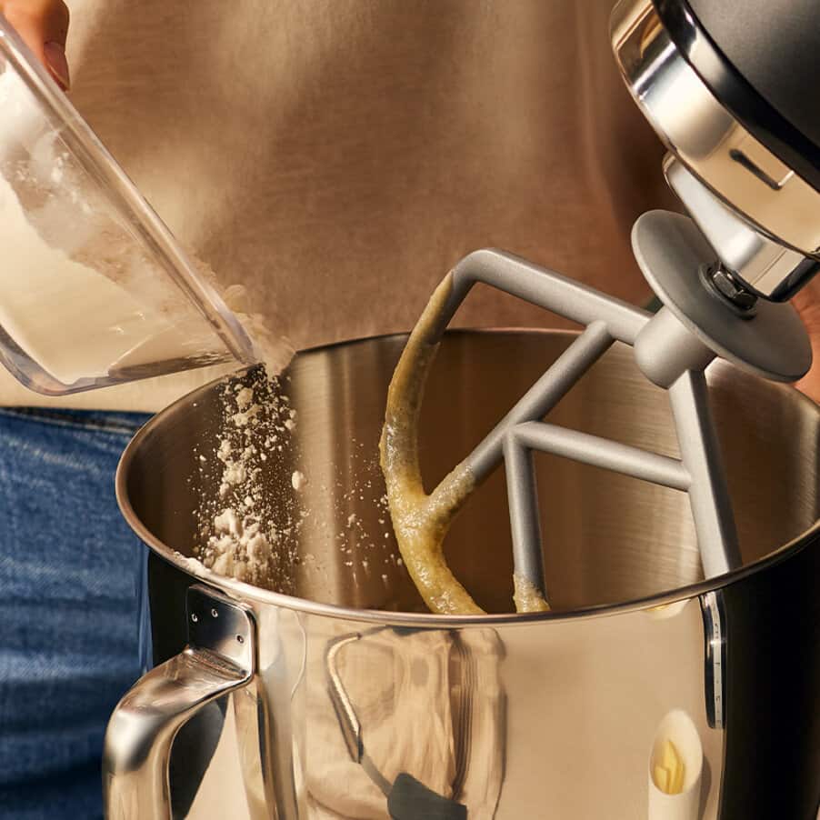 De ruime mengkom maakt de keukenrobot geschikt voor zowel kleine als grotere bereidingen. Van dagelijkse baksels tot uitgebreid weekendbakken — deze machine draait er zijn hand niet voor om. Bovendien kan de kMix uitgebreid worden met verschillende accessoires, waardoor hij meegroeit met jouw kookambities.