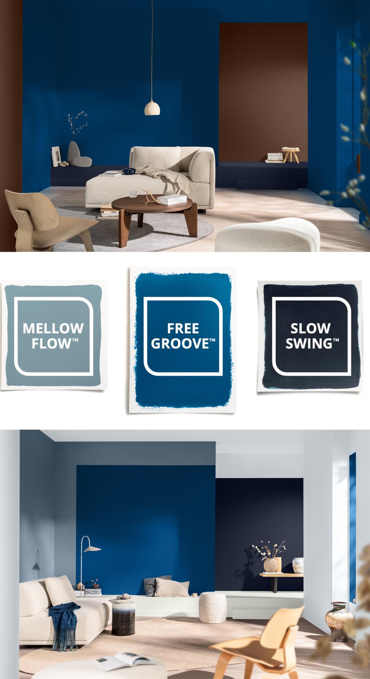 De trendkleur van 2026 draait om vrijheid en flexibiliteit: jouw ruimte, jouw tempo. Met Free Groove™ wil Levis inspireren om een thuis te creëren dat zich aanpast aan jouw ritme. Om die vrijheid kracht bij te zetten, werd er een harmonieuze familie van drie blauwtinten ontwikkeld. Free Groove™ vormt het stralende middelpunt, terwijl de diepe indigotint Slow Swing™ rust en sereniteit toevoegt en Mellow Flow™ voor een zachte, lichte balans zorgt. Samen vormen ze ‘Family of Blues’, een samenspel dat bewijst hoe veelzijdig en sfeervol blauw kan zijn.