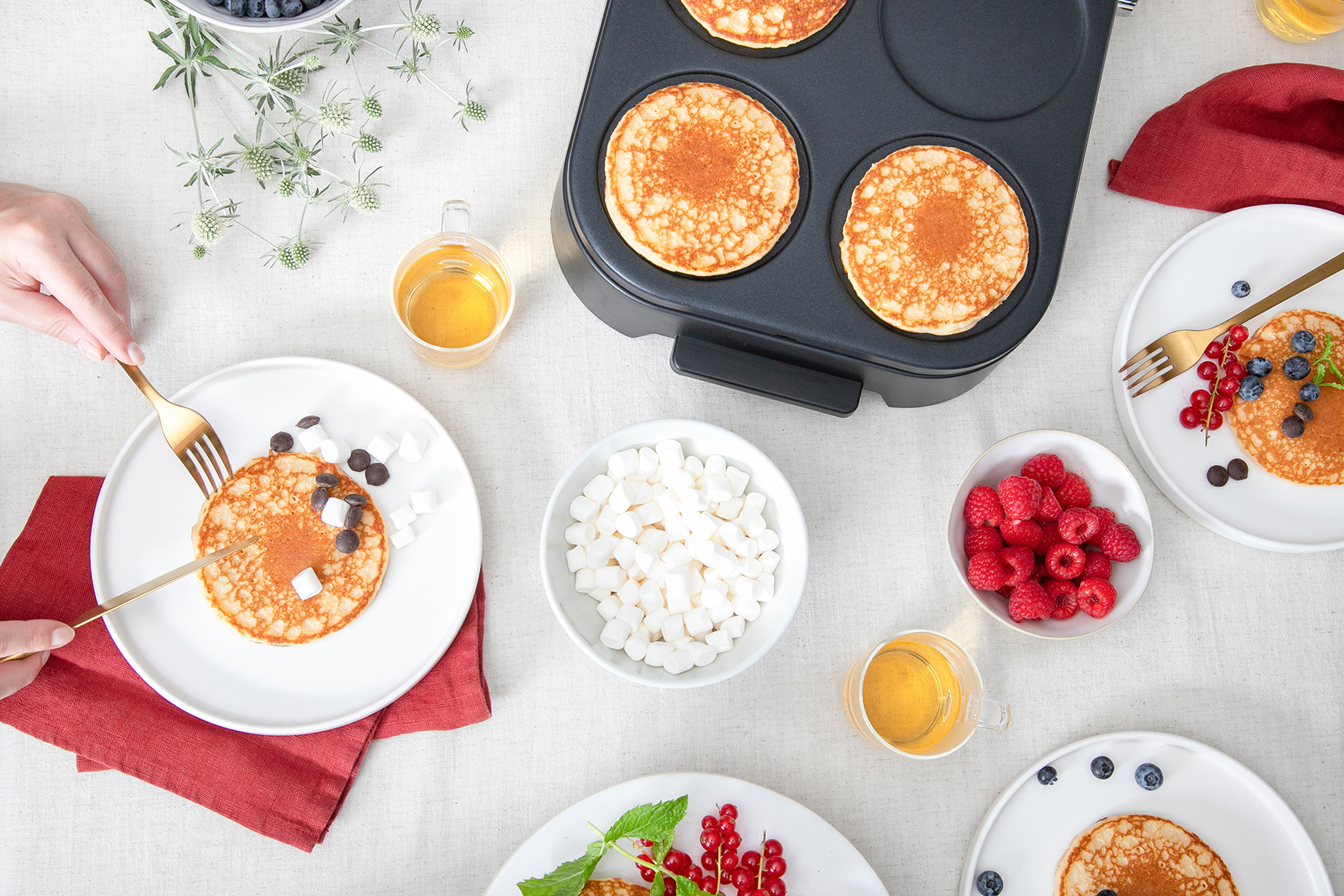 De FRITEL PM 2260 maakt pannenkoeken bakken opnieuw leuk. Een “pancake party” aan tafel wordt snel realiteit: iedereen kiest zijn eigen favoriete topping — van klassieke pannenkoeken met stroop of confituur tot hartige versies met groenten, spek of kaas. Door de eenvoud en snelheid van het toestel kan je moeiteloos experimenteren en variëren.