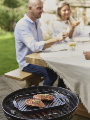 Wat deze collectie bijzonder maakt, is de manier waarop functionaliteit en materiaalkeuze samenkomen. Het hoogwaardige keramiek zorgt ervoor dat ingrediënten eerst mooi dichtschroeien en daarna gelijkmatig verder garen. Tegelijkertijd houdt het materiaal de warmte opmerkelijk lang vast, waardoor gerechten ook na het serveren nog aangenaam warm blijven. Dat maakt de schalen niet alleen geschikt voor barbecuegebruik, maar evenzeer voor ovenbereidingen of zelfs creatieve toepassingen zoals desserts op de grill.