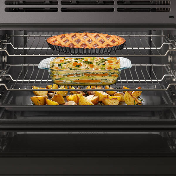 Hoewel de oven weinig plaats inneemt in de keuken, biedt hij binnenin verrassend veel ruimte. Dat maakt hem geschikt voor dagelijkse maaltijden, maar ook voor etentjes met vrienden of familie. Van een ovenschotel tot meerdere gerechten na elkaar: deze oven past zich moeiteloos aan jouw kookritme aan.