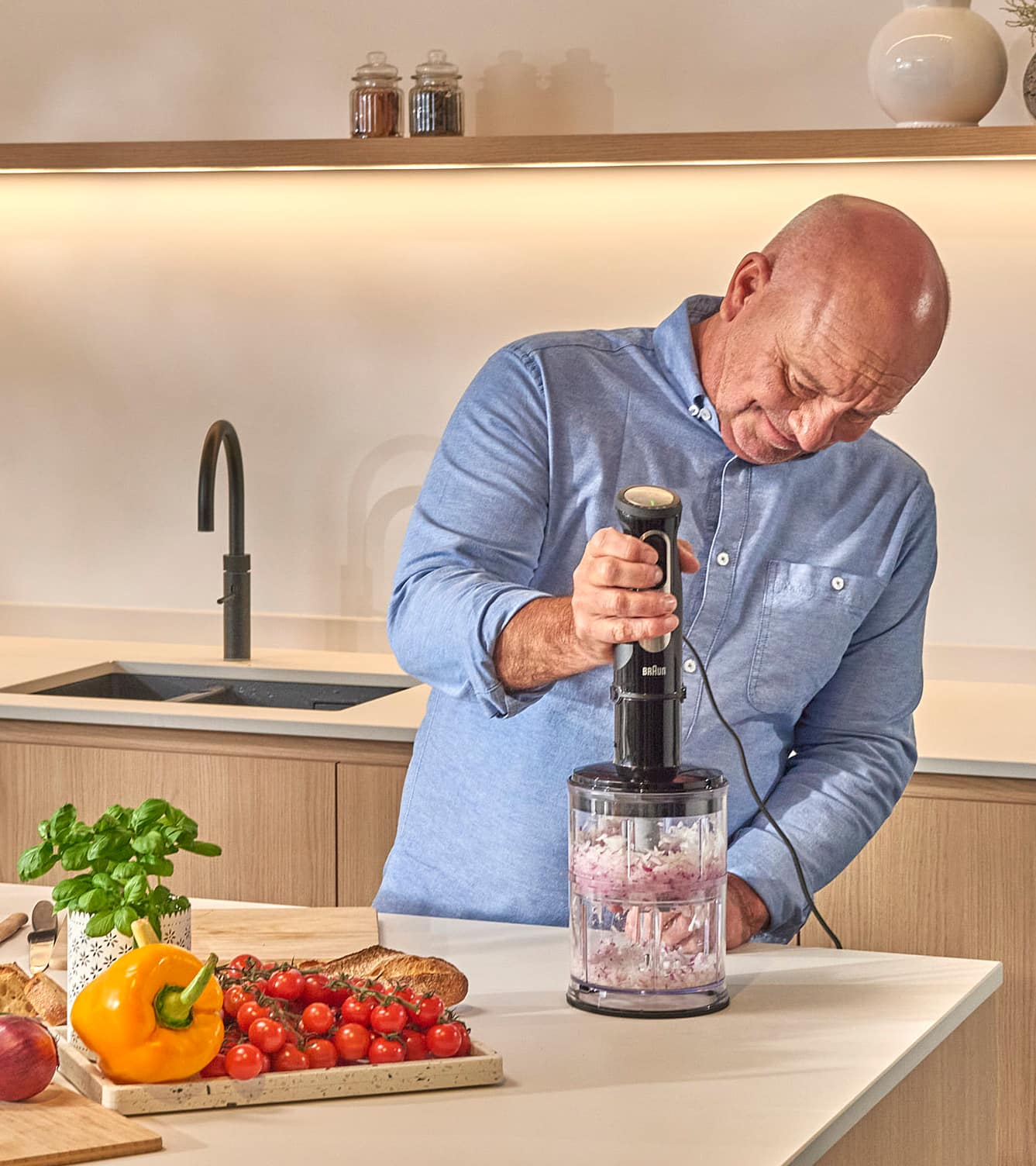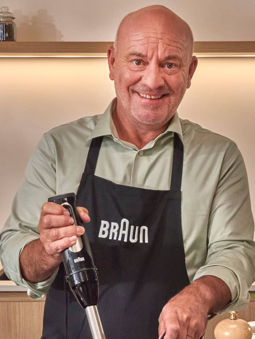 In het nieuwe seizoen zie je Piet regelmatig aan de slag met zijn favoriete keukenapparaten van Braun. Krachtige staafmixers, hakmolens en keukenrobots worden een vaste partner-in-crime wanneer hij mislukte gerechten omtovert tot smakelijke reddingsoperaties.