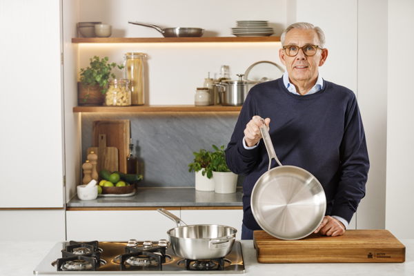 “Professionaal 3-laags roestvrij staal geeft me volledige controle: perfecte warmteverdeling, snelle respons en een bakoppervlak waarmee ik gelaagde smaken kan opbouwen.” – Peter Goossens